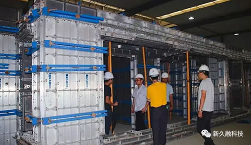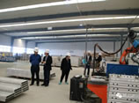 2019年4月1日,重慶國浪建筑工程有限公司董事長蔡春浪率隊蒞臨新久融科技考察交流鋁合金模板項目。重慶國浪建筑工程蔡董一行參觀生產(chǎn)車間預拼裝現(xiàn)場鋁模板噴涂車間焊接機器人
